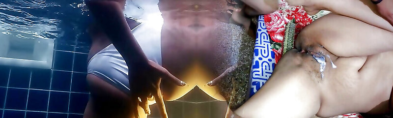 My Stepmother is not at Home and her Best Mate Fucks me in the Pool, She Groans so Hard and OMG we were Discovered!