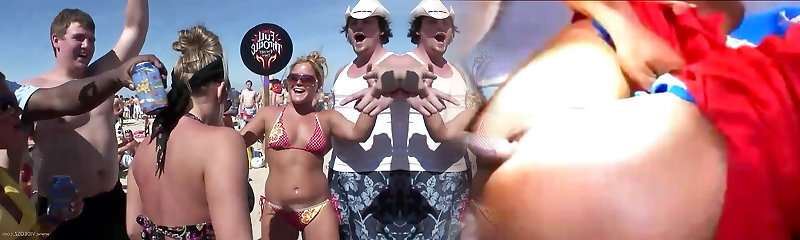 Charming babes in bikini audition their sexy hooters partying wildly at the beach in reality shoot