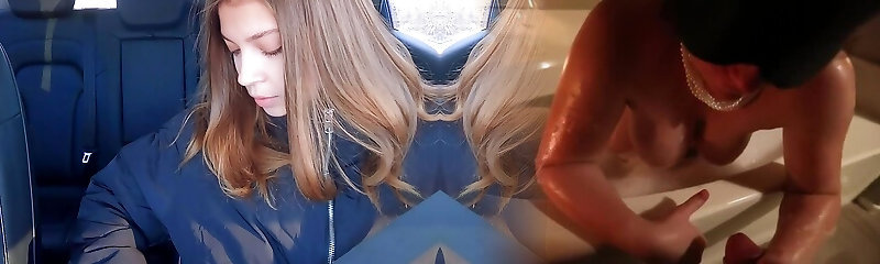 Peed out of the car with jism on my tits