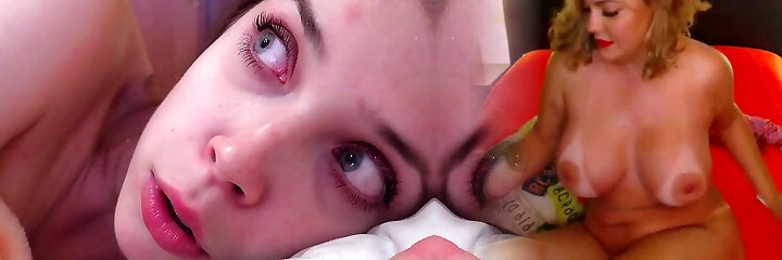 Diana deepthroats and gags on a massive fuck stick on webcam