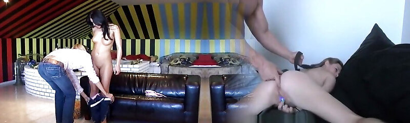Busty lingerie-clad Vanessa has multiracial anal sex