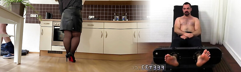 Lustful mother-in-law fucked herself in the kitchen and made her son-in-law spunk on her skirt