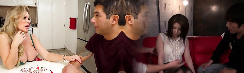 Hotwife hubby looks on as hot wife gets pounded with a immense cock