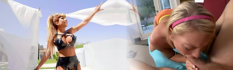 Sexy blonde with real big drizzle sucks cock in milf video