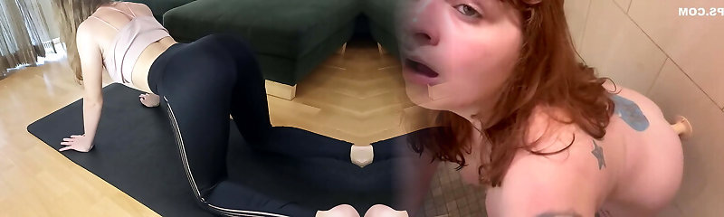 Penetrated Sporty Girl on a Yoga Mat, Cumshot on her Mammories