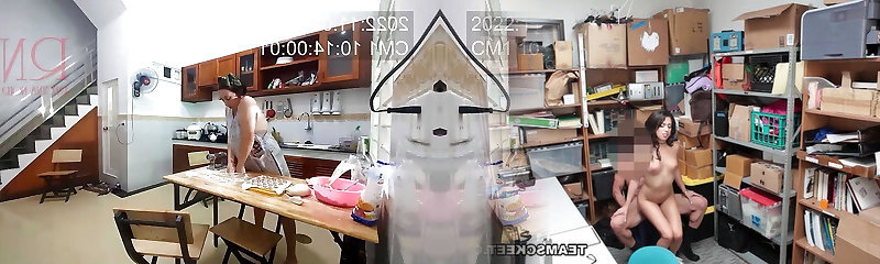 Ravioli Time! A bare housekeeper works in the hotel kitchen. Depraved housekeeper works in the kitchen without underpants.