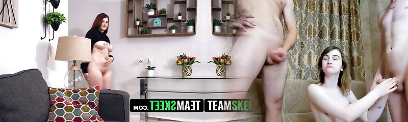 Slutty stepsister is always naked at home so her stepbro notices and fucks taut vulva