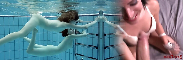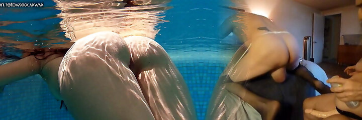 Sumptuous babes with big tits swim underwater in the pool