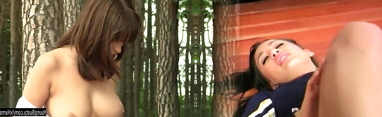 Huge-chested teen Rita masturbate outdoors