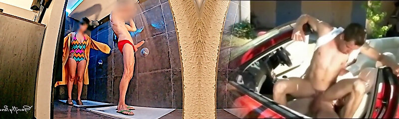 Mingled RESTROOM ADVENTURE: dickflash and exhibitionism for two sluts at swimming pool restroom