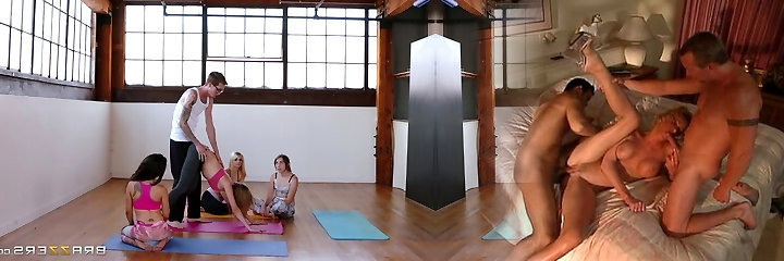 Trimmed pussy blondie Aria Logan enjoys getting fucked during yoga