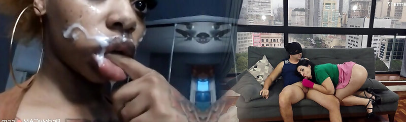 Cum on tits and face with a ebony cutie providing a nice mouth job pov