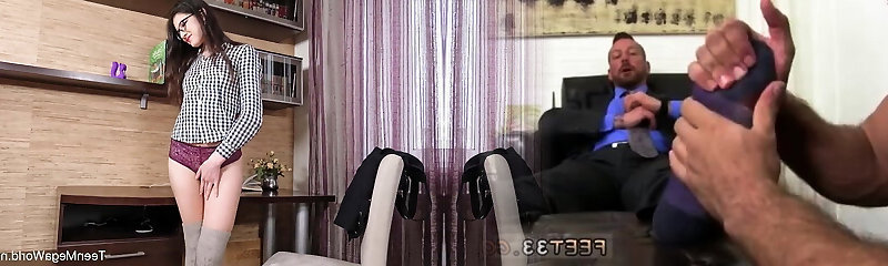 Teen blondie Alyssa Cole missionary fucked in long socks