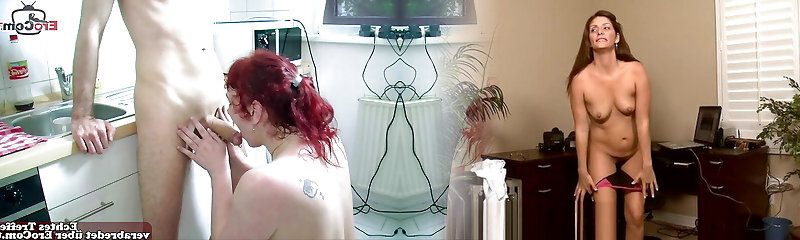 German mature couple Casting threeway FFM in kitchen