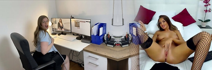 The horny women show off their firm cleavage in a situation alone with each other and sense the urge to get their pussies Two