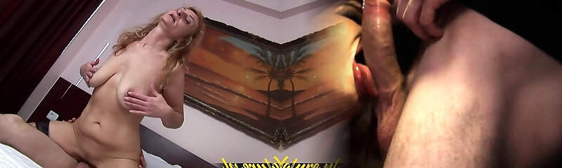 Taboo! Stepson with big dick cums inside his cougar step-mother on vaca